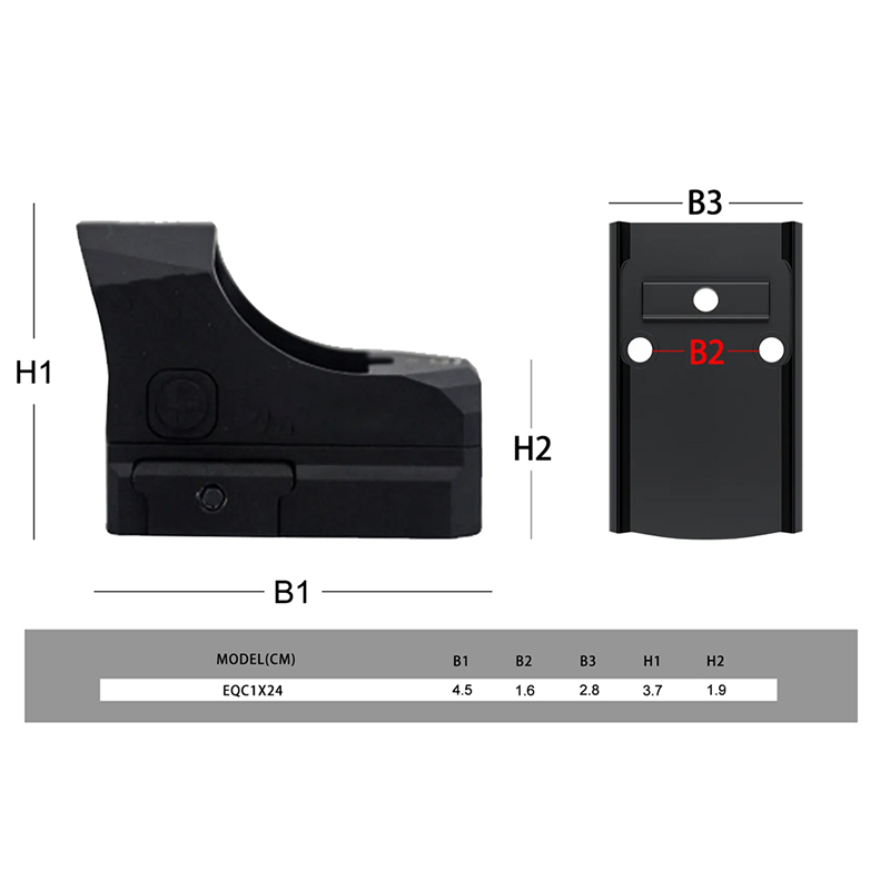 EQC 1x24 سیاہ شکار کے لوازمات آپٹیکل 1x ریڈ ڈاٹ سائٹ ٹیکٹیکل آؤٹ ڈور ریڈ ڈاٹ سائٹ