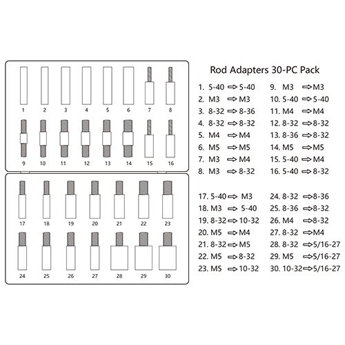 گن کلیننگ راڈ فٹنگ اڈیپٹر 30 پی سی پیک 5-40 8-32 10-32 5/16-27 M3 M4 M5 تھریڈز مرد اور خواتین کی چھڑی کنیکٹر میں تھریڈز