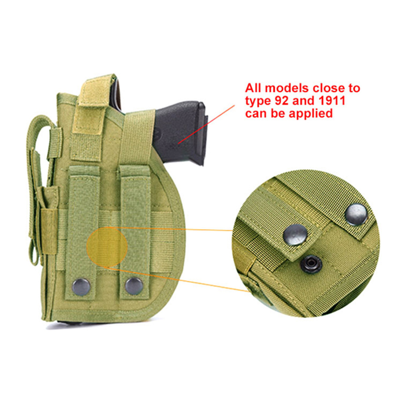 پریمیم میٹریل پائیدار ، نرم اور سانس لینے کے قابل نیپرین اندرونی مواد جو آپ کے ہینڈگن کے انتخاب کو چھپانے کا یقین رکھتا ہے۔ مضبوط بکسوا کا پٹا مضبوطی سے لاک ہوجائے گا اور آپ کے ہتھیار کو اچھالنے سے روک دے گا! مضبوط نایلان کے ذریعہ تعمیر کردہ ہولسٹرز نہ صرف ڈیزائن میں خوبصورت ہیں ، بلکہ استعمال میں پائیدار بھی ہیں۔