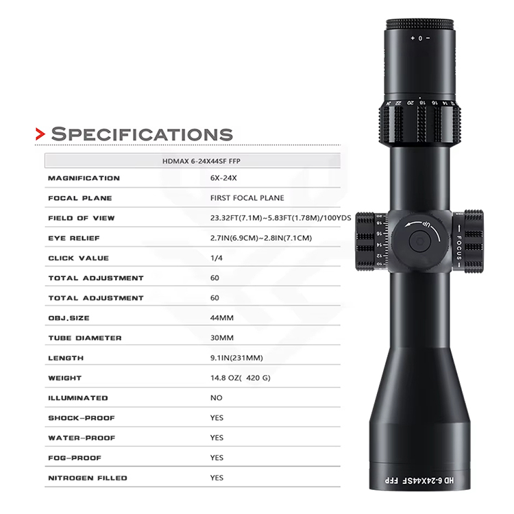 ایچ ڈی زیادہ سے زیادہ 6-24x44 ایس ایف ایف ایف پی ایچ ڈی ہائی لینس شکار مونوکولر دوربین تھوک