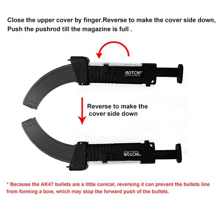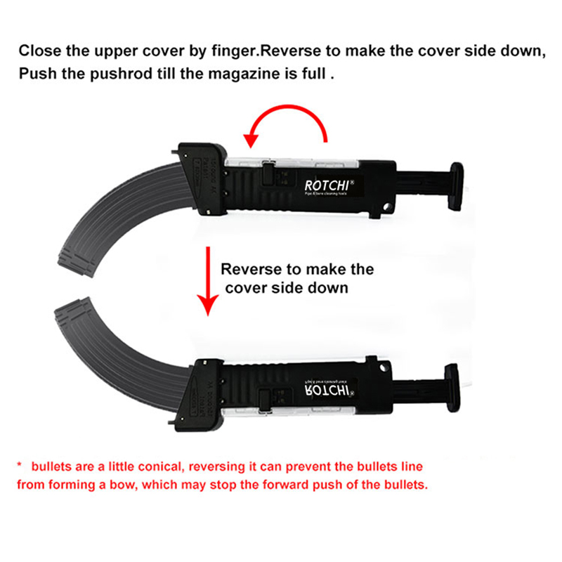 ● 10/20/30 یا اس سے زیادہ بڑی صلاحیت میں اے کے میگزین میں 7.62x39 ملی میٹر کارتوس کو لوڈ کرنے کے لئے استعمال کیا جاتا ہے۔