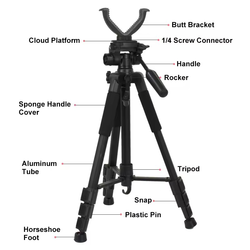 آؤٹ ڈور ٹیکٹیکل گن پورٹیبل تپائی کی حمایت شکار دوربین شوٹنگ راڈ وی کے سائز والے روٹری جوئے تپائی