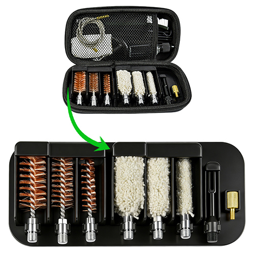 شاٹگن کلیننگ کٹ میں 3 سائز (12/16G, 20G, 410) شامل ہیں۔ پیتل کے برش اور