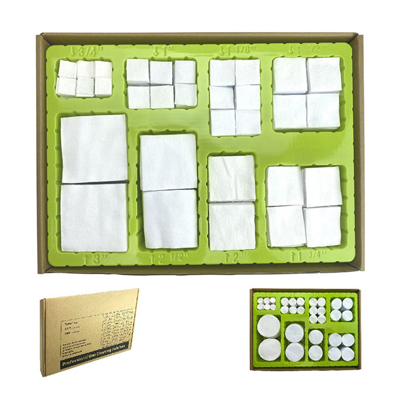 یونیورسل وائٹ کاٹن کپڑا مربع بندوق صاف کرنے والے پیچ چھالے والے خانے